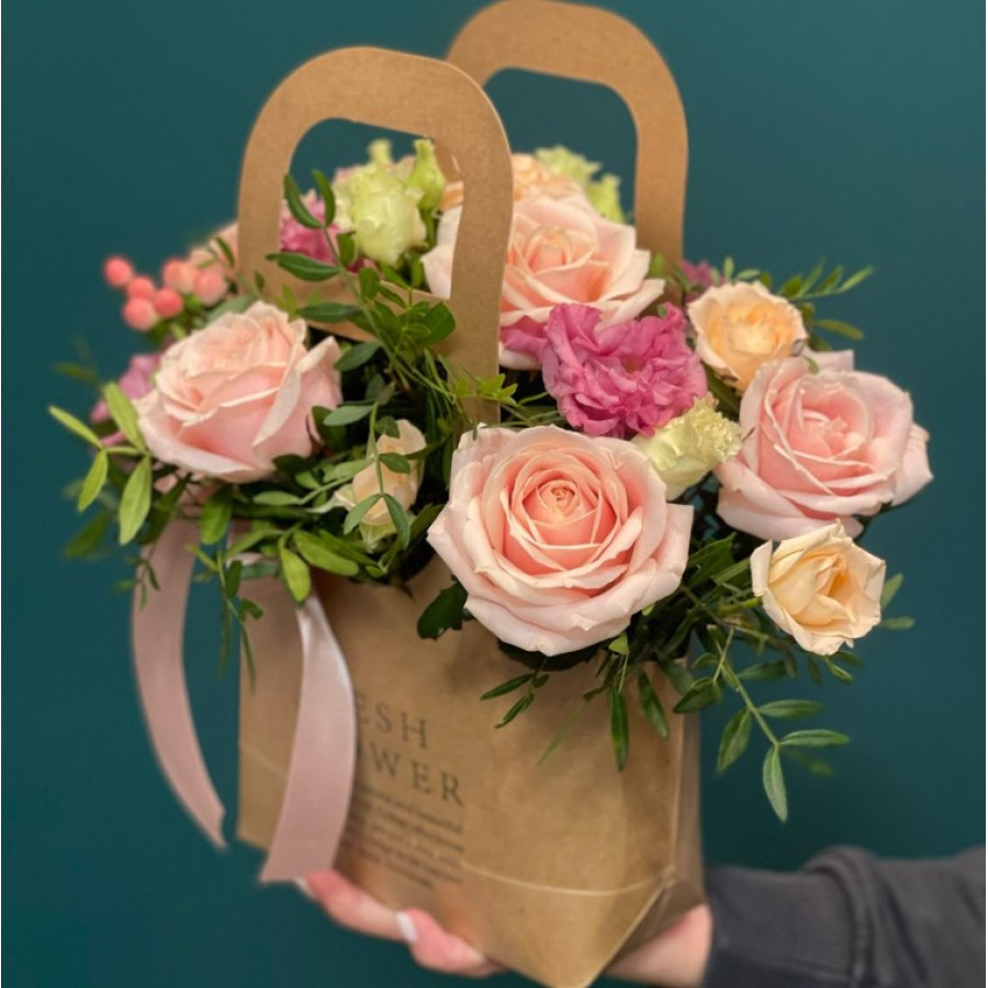 Букет сочетает насыщенные классические розы, объемные кустовые розы, воздушную эустому, яркие ягоды гиперикума и свежий писташ. Собранный в стильный плайм-пакет, он станет отличным подарком для любого случая - от дня рождения до корпоративного мероприятия. Благодаря сбалансированному составу выглядит одновременно празднично и непринужденно, что делает его универсальным выбором для тех, кто ценит элегантную простоту.