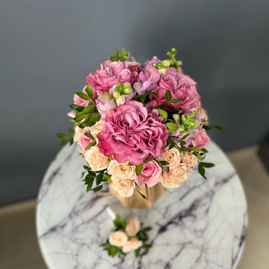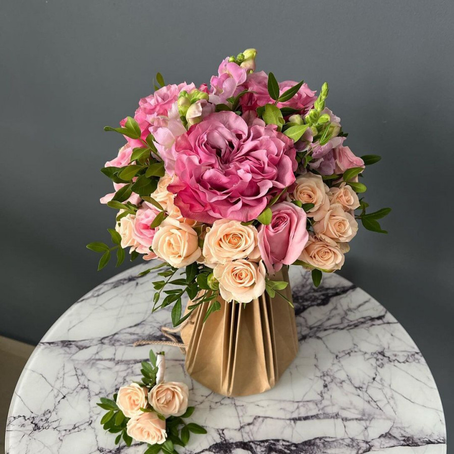 Перед выездом курьера пришлём фото свежесобранного букета, чтобы вы были спокойны